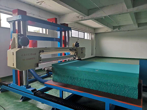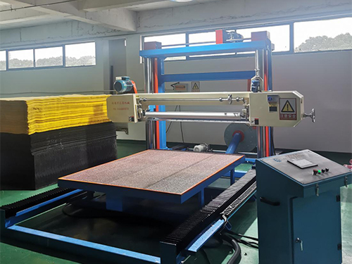 本機主要是把塊狀泡綿切成薄片,采用自動數(shù)字控制,根據(jù)需要切割的厚度和泡綿的密度,通過控制箱設定數(shù)值。工作臺采用不銹鋼板并 帶吸風裝置。為了防止切割的泡綿滑動,可加壓輥,操作簡便,切割準確。